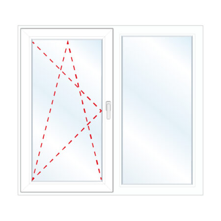 Okno dwuskrzydłowe, lewe rozwierno-uchylne w lewą stronę, prawe nieotwieralne, szklone w ramie