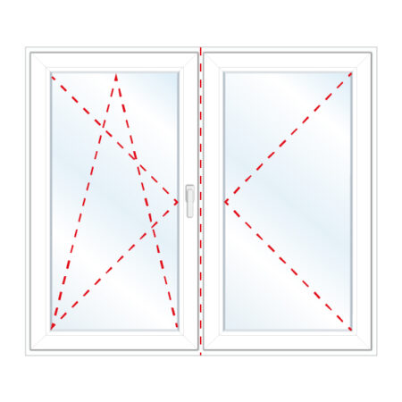 Okno dwuskrzydłowe,lewe rozwierno-uchylne w lewą stronę,prawe rozwierno-uchylne w prawą stronę, słupek stały