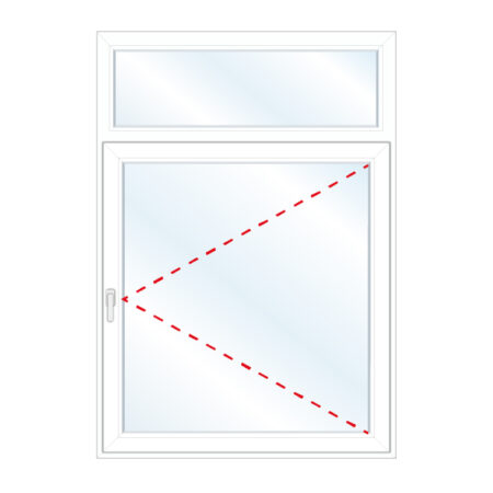 Okno rozwierno-uchylne w lewą stronę, nadstawka nieotwieralna szklona bezpośrednio w ramie