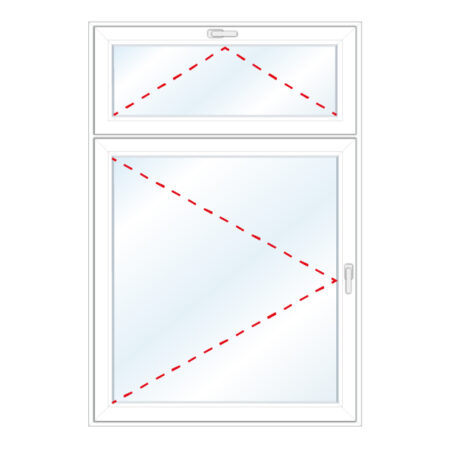 Okno rozwierno-uchylne w prawą stronę, nadstawka uchylna szklona w skrzydle